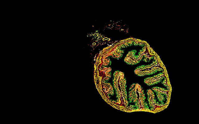 图为C57BL/6小鼠直肠切片的免疫荧光图